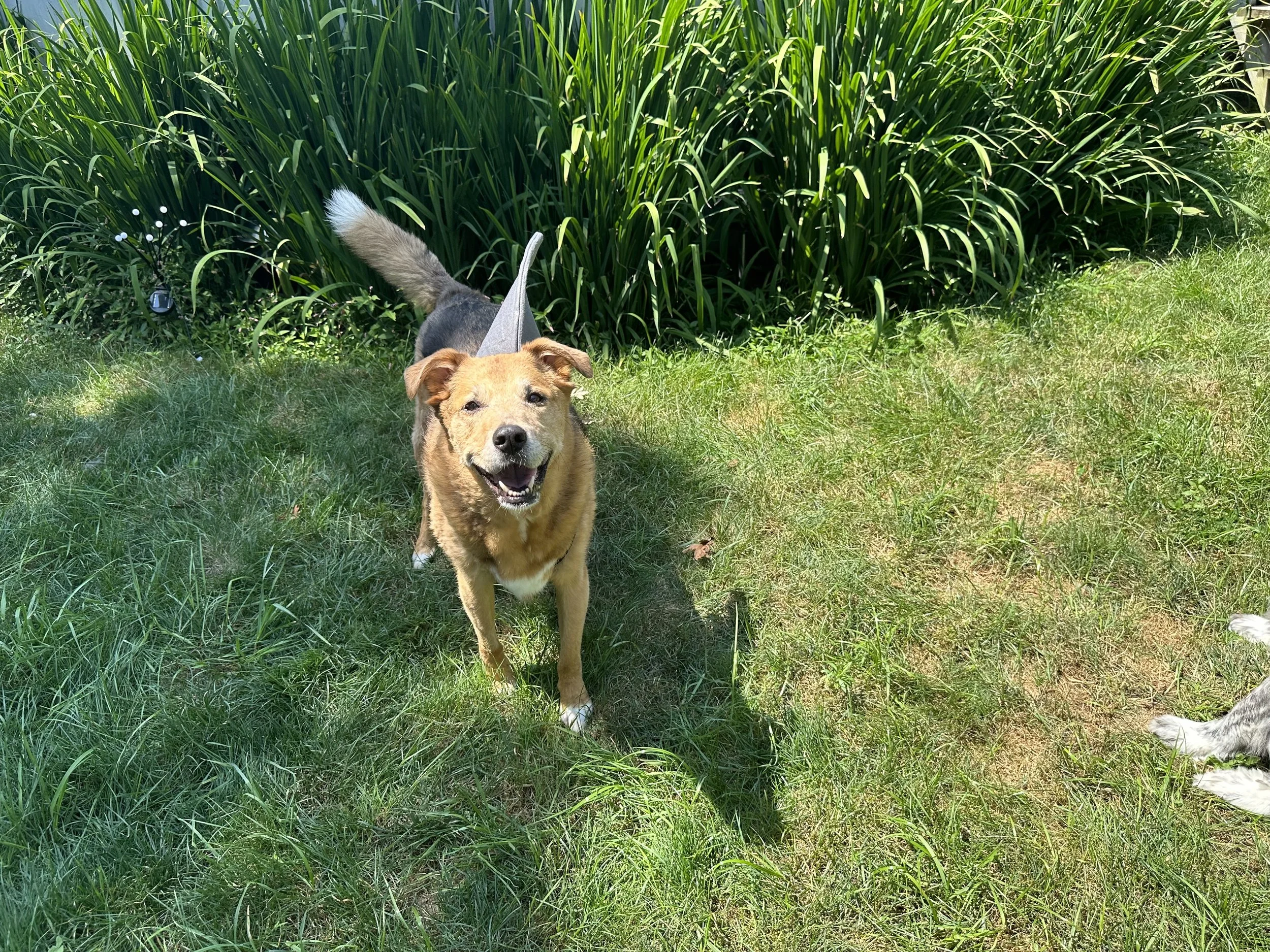 Look Out! Here come the Land Sharks!!! The doggies wanted to get in on the fun of Shark Week and loved running around the yard in their fins. We tried so hard to get them into the kiddie pool, but they were not having it. It was impossible for me to only pick one picture. Iām lucky I narrowed it down to five. Cuteness overload.